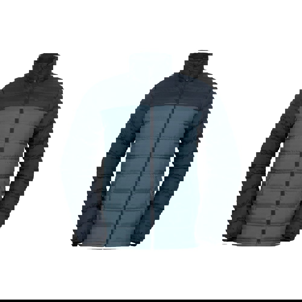 This padded jacket is made with a 100% nylon outer and microfibre filling. It comes in dark blue with a colour block design and logo detailing, offering a clean, modern look for everyday wear.
