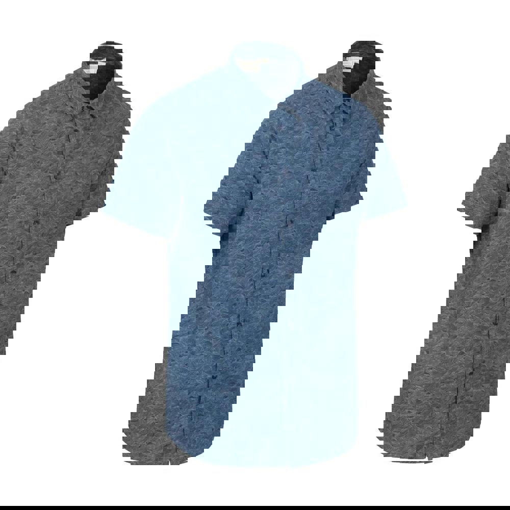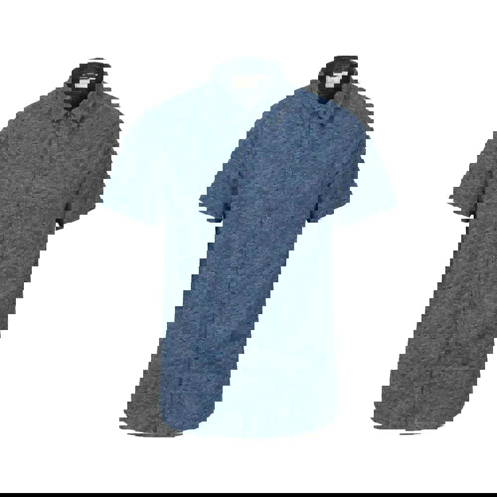 This men’s short-sleeved shirt comes in navy with a printed wave design. Made from 100% cotton, it has a button-down fastening and a turn down collar for a clean, classic finish. A single chest pocket adds a practical detail, keeping the look simple and functional for everyday wear.