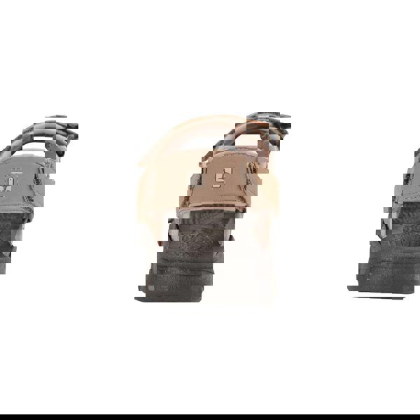 Finished in brown with contrast detail, they have an open toe and a touch fastening for easy on and off. The deep lug TPR outsole completes the design with a defined tread pattern.