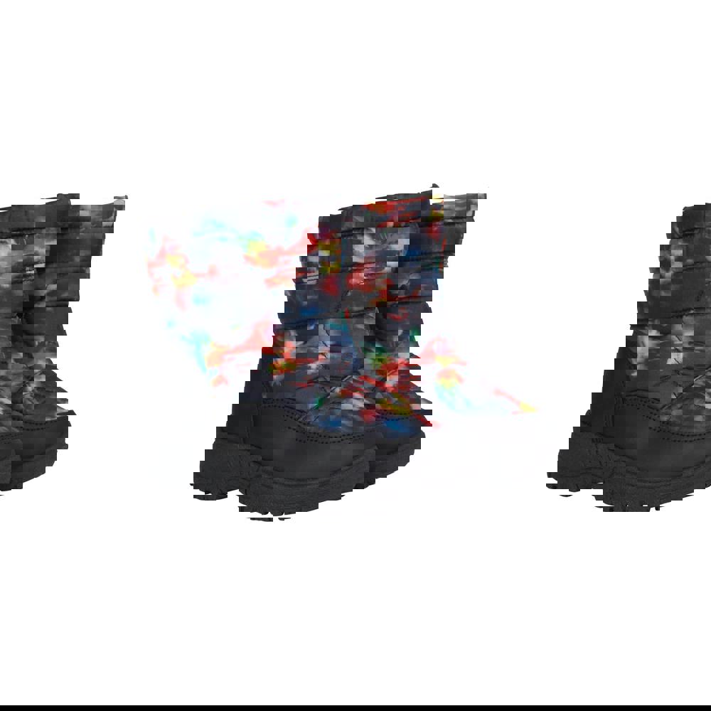 These toddler snow boots come in a red tie dye design with an ankle cut and a round toe. The slip-on shape is paired with a toggle fastening and a drawcord for a secure fit. A microfibre padded sock and soft sherpa fleece lining add comfort inside the boot.
