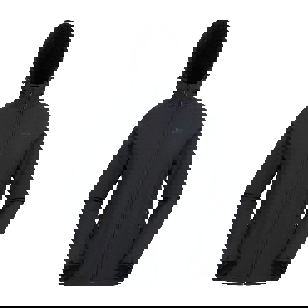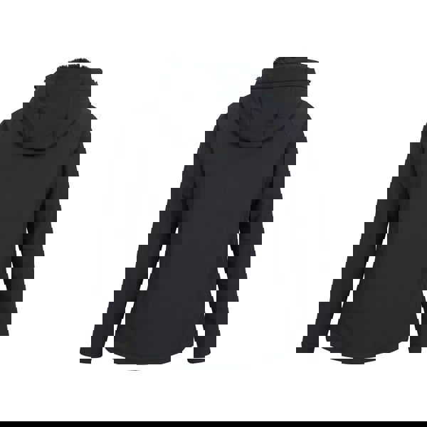 This women’s softshell jacket is made from a woven outer of 94% polyester and 6% elastane, with a 100% polyester lining. The lining combines faux fur and fleece for a soft feel. A plain Jet Black finish is paired with logo detailing, keeping the look clean and understated.