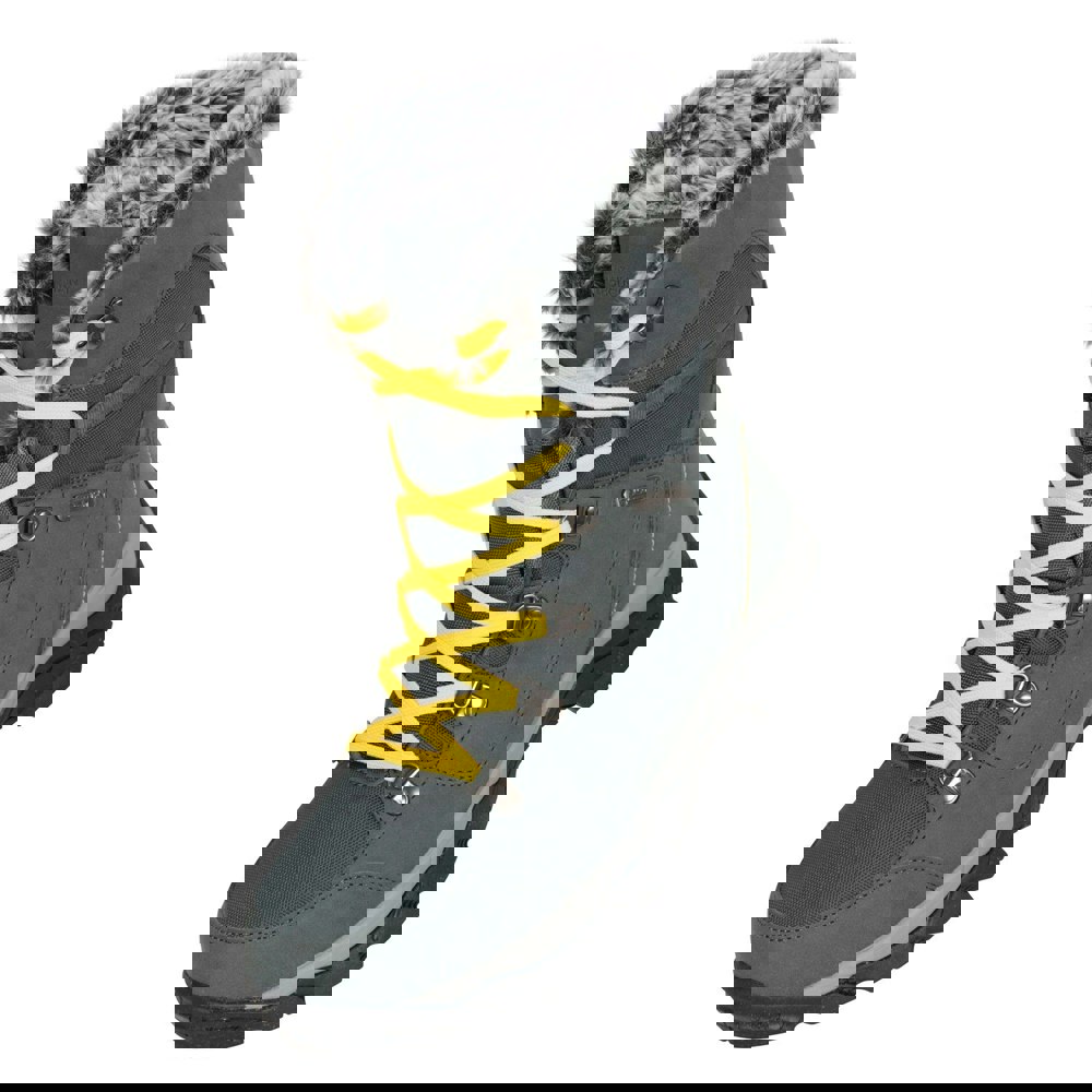 Mountain Warehouse Banff snow boots in petrol with a mid-cut profile and plain finish. The upper combines synthetic and textile materials with a water-resistant and waterproof construction, supported by breathable IsoDry and Isotherm technology. A faux fur trim adds a distinctive detail, while the Thinsulate textile lining is paired with a synthetic insole for internal comfort.