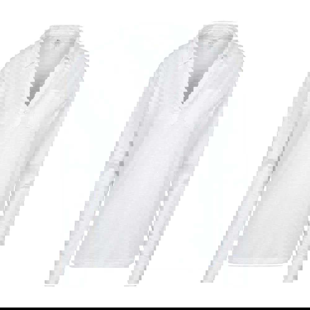 Refresh your everyday wardrobe with this relaxed fit polo shirt in white. Made from a cotton blend with a soft-touch finish, it keeps the look clean and simple with a plain design. Long sleeves with button roll-up detailing add versatility, while the turn-down collar maintains a classic polo shape. A single chest pocket completes the streamlined layout.