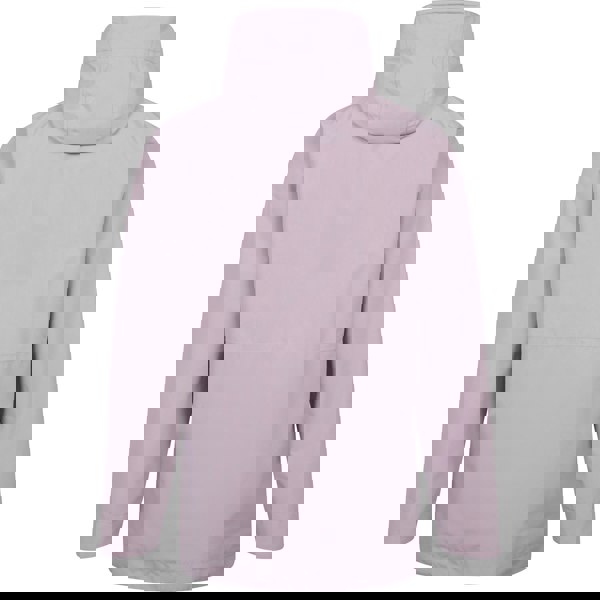 The hood is adjustable with a drawstring and sew-on construction. Two front pockets with zip closures keep essentials secure. A 5000mm waterproof rating and 5000g/m²/24hrs breathability rating are specified, alongside a lightweight, breathable fabric technology and a PFC-free finish.