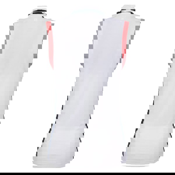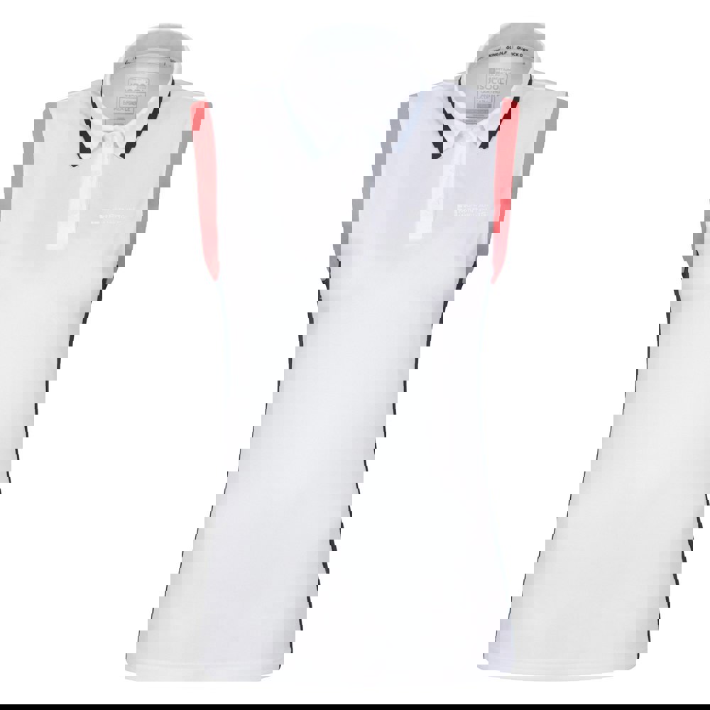 This sleeveless golf vest top is made from 100% polyester and finished in white with contrast trim. A turn down collar and 3 button placket give it a classic polo neck look, suitable for golf and other active wear.