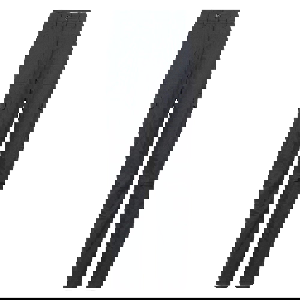 Pocket storage includes two side pockets, two thigh pockets with flap closure, and one back pocket with a zip. The fabric technology is abrasion resistant, durable and quick dry, with sun protective UV protection and a UPF 50+ sun rating.