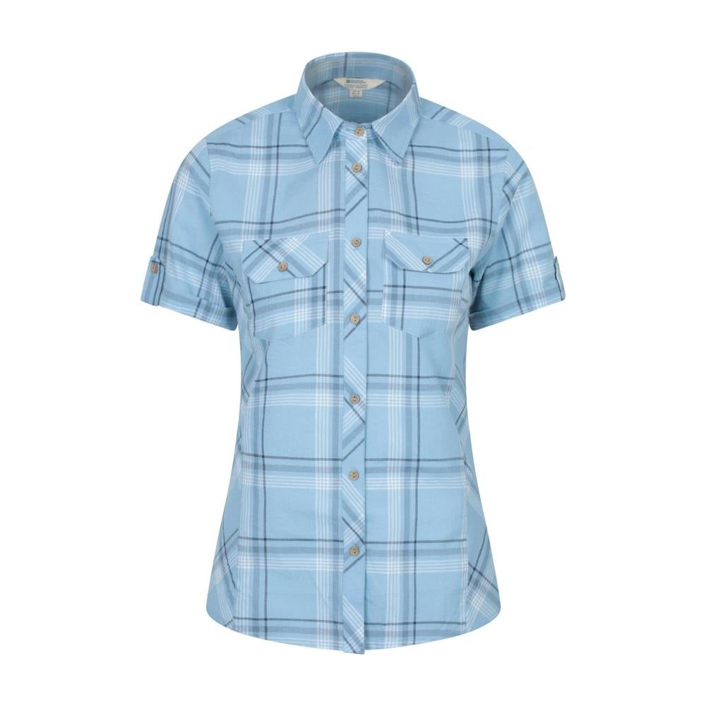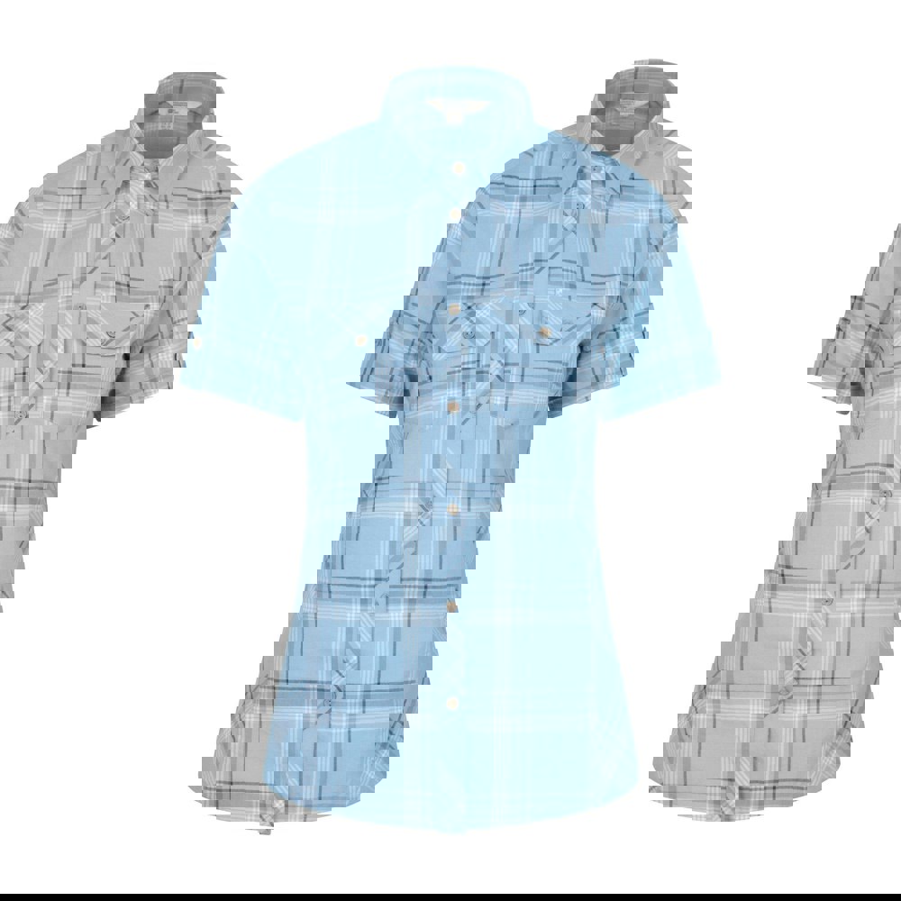 This women’s holiday shirt is made from 100% cotton with a checked design. It has a turn down collar and short sleeves, finished with buttoned, turned up cuffs for a neat look.