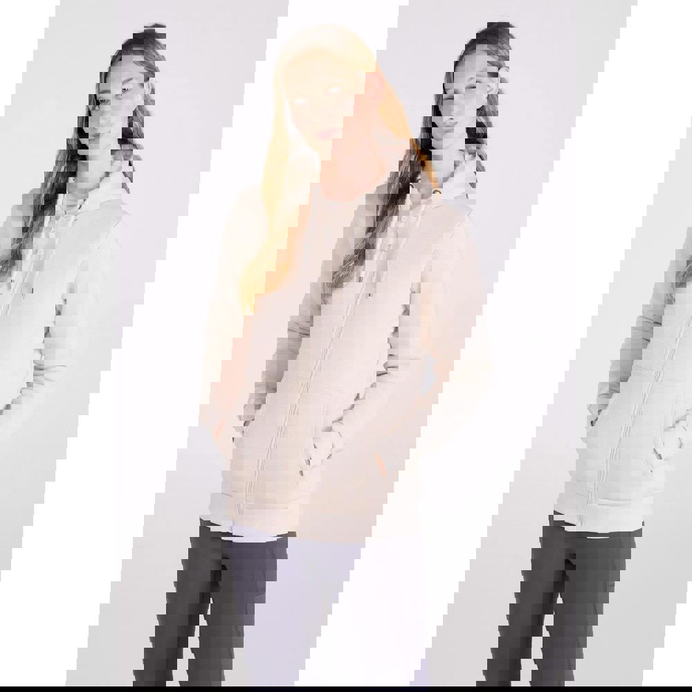 This full zip hoodie is finished in a plain light beige design with a sherpa lining. The hooded neckline is paired with a grown on hood, complete with an adjustable drawcord for a secure feel. Long sleeves and elasticated cuffs help keep the shape neat, while the elasticated hem adds a clean finish.