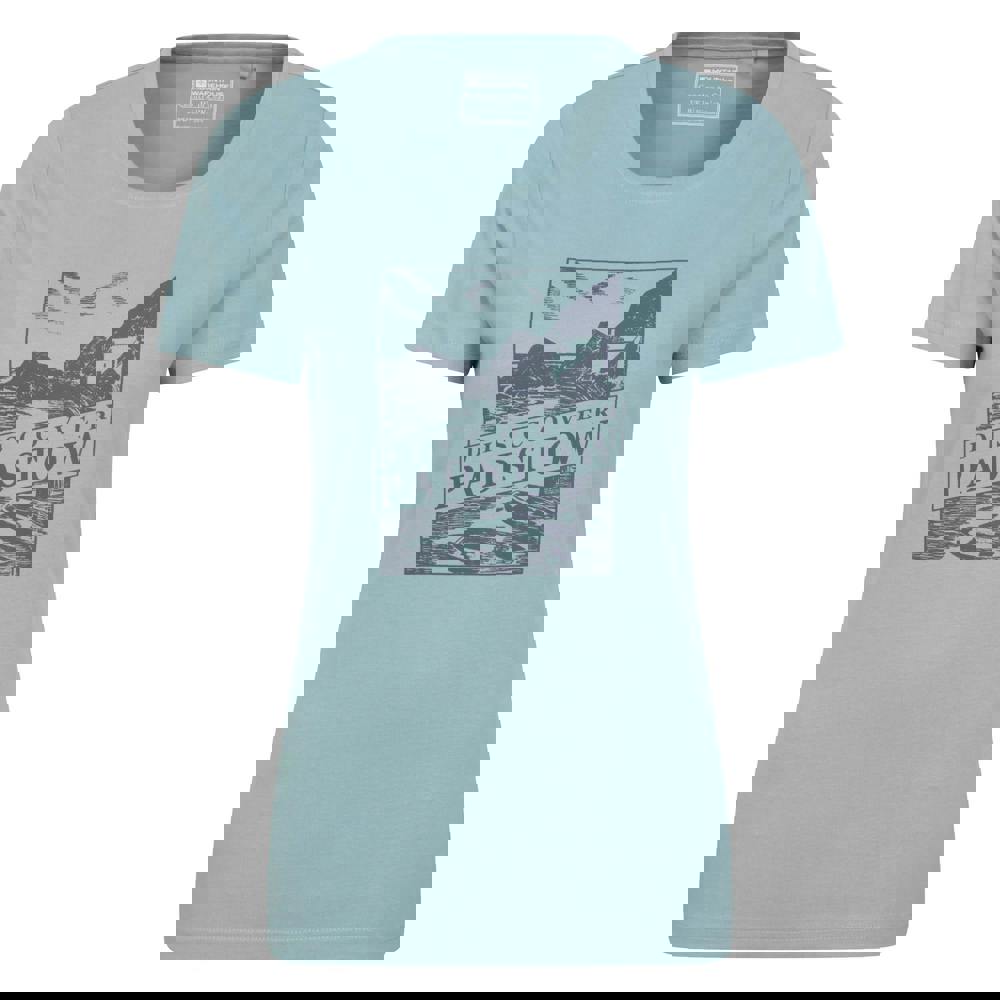 This printed T-shirt is made from 100% cotton and comes in blue. It has a crew neck and short sleeves for a simple, everyday shape. The design combines boat and mountain graphics with printed text.