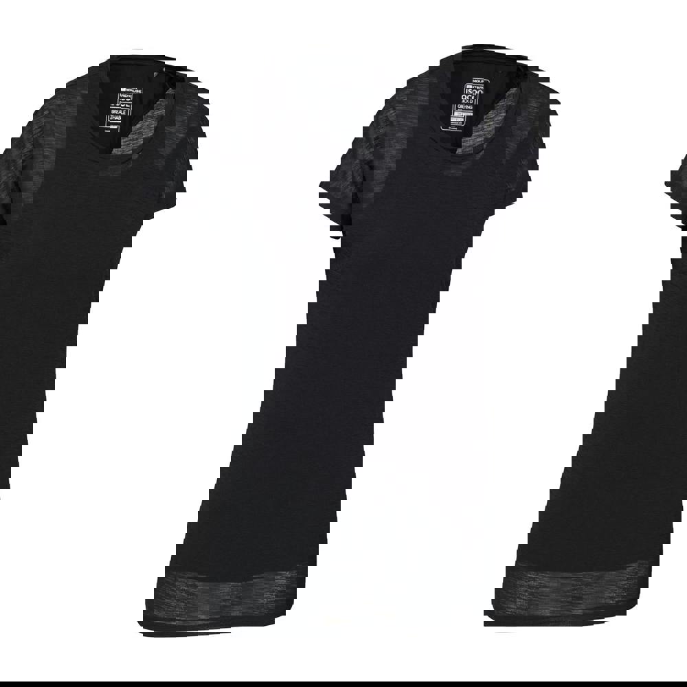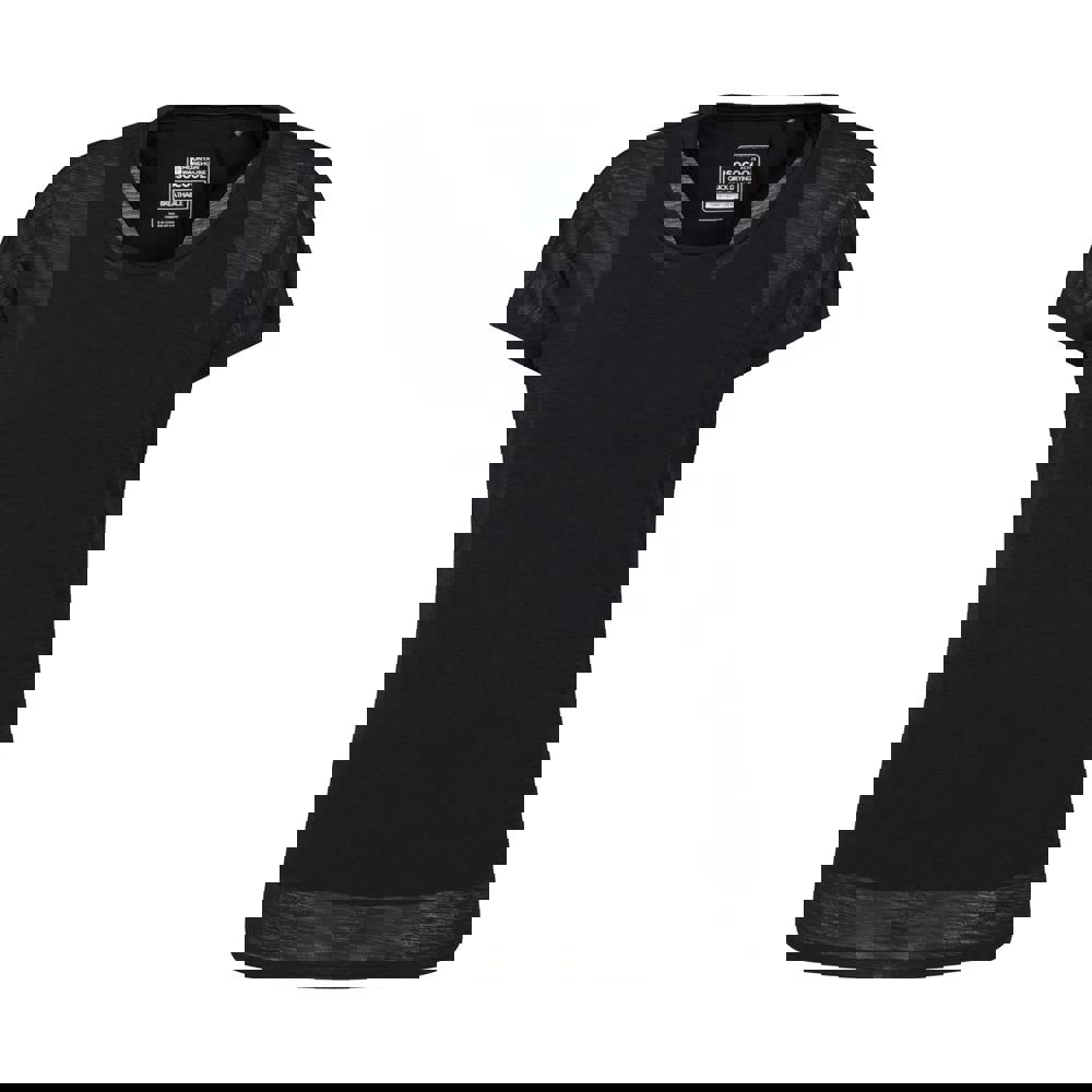 This women’s double layered T-shirt from Mountain Warehouse comes in black with a plain design and a round neckline. Made from 100% polyester, it has a soft-touch feel with added stretch. The short-sleeved cut keeps the look simple and easy to wear.