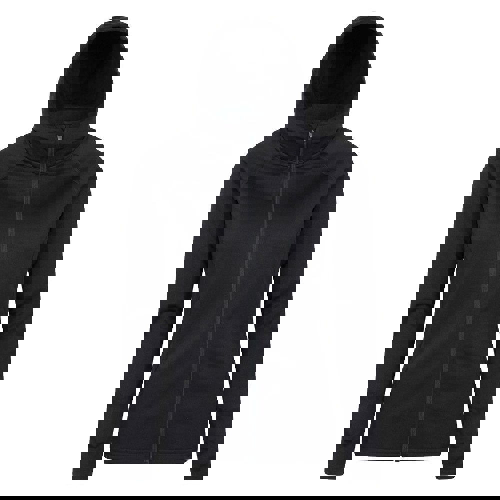 Refresh your casual layers with this women’s full zip hoodie from Mountain Warehouse. Made from a blend of elastane and polyester, it has a plain design in black and a hooded neckline with a grown on hood. Long sleeves keep the look classic, while the full zip fastening offers easy on and off.