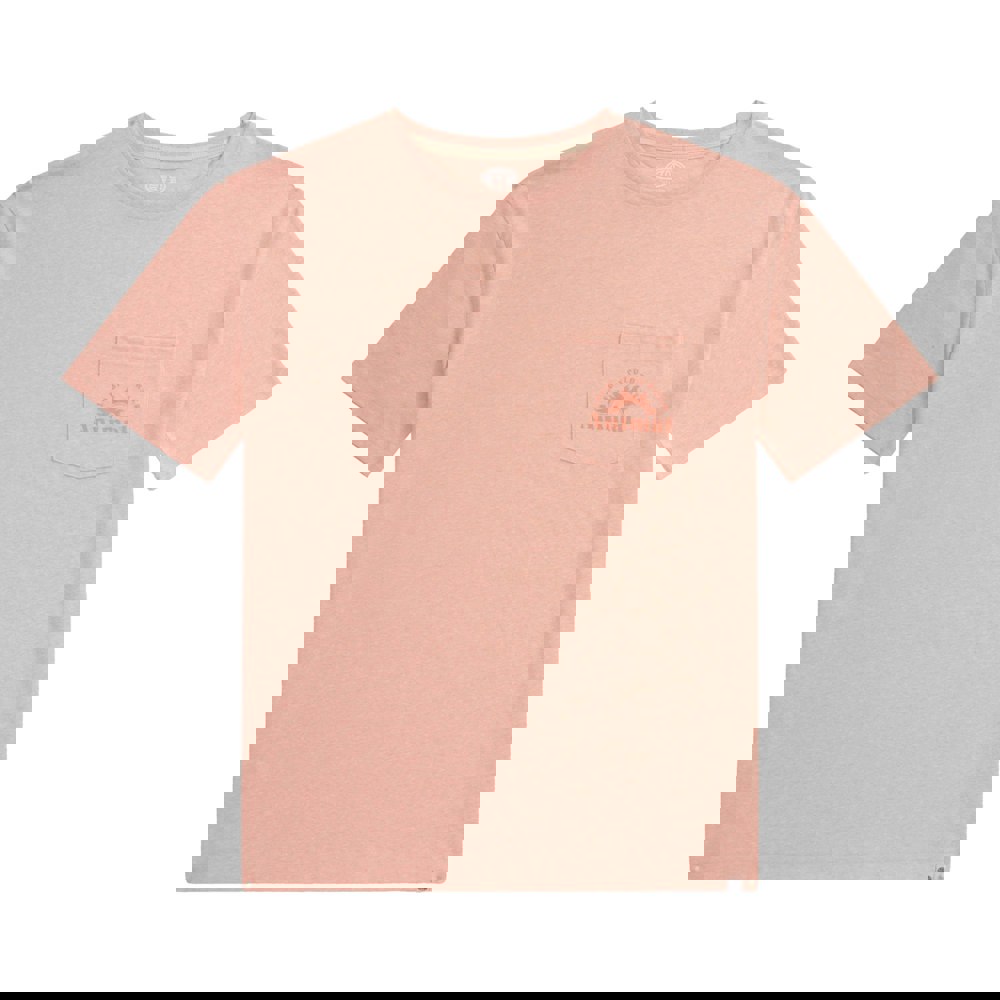 This short-sleeved T-shirt comes in pink with a printed text design and a crew neckline. It includes a single chest pocket and is made from a blend of elastane, organic cotton, recycled polyester and viscose. A soft-touch finish and lightweight fabric technology keep the feel simple and easy to wear.