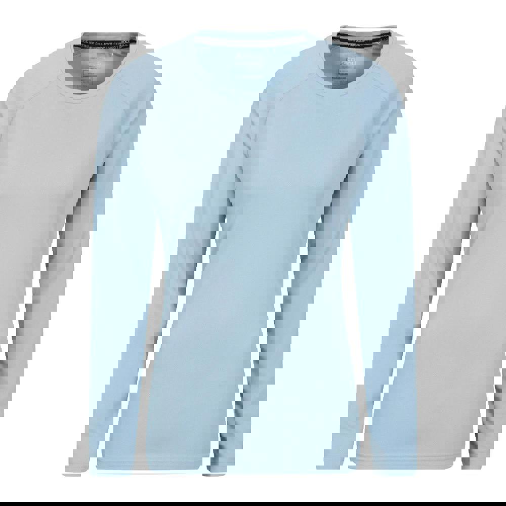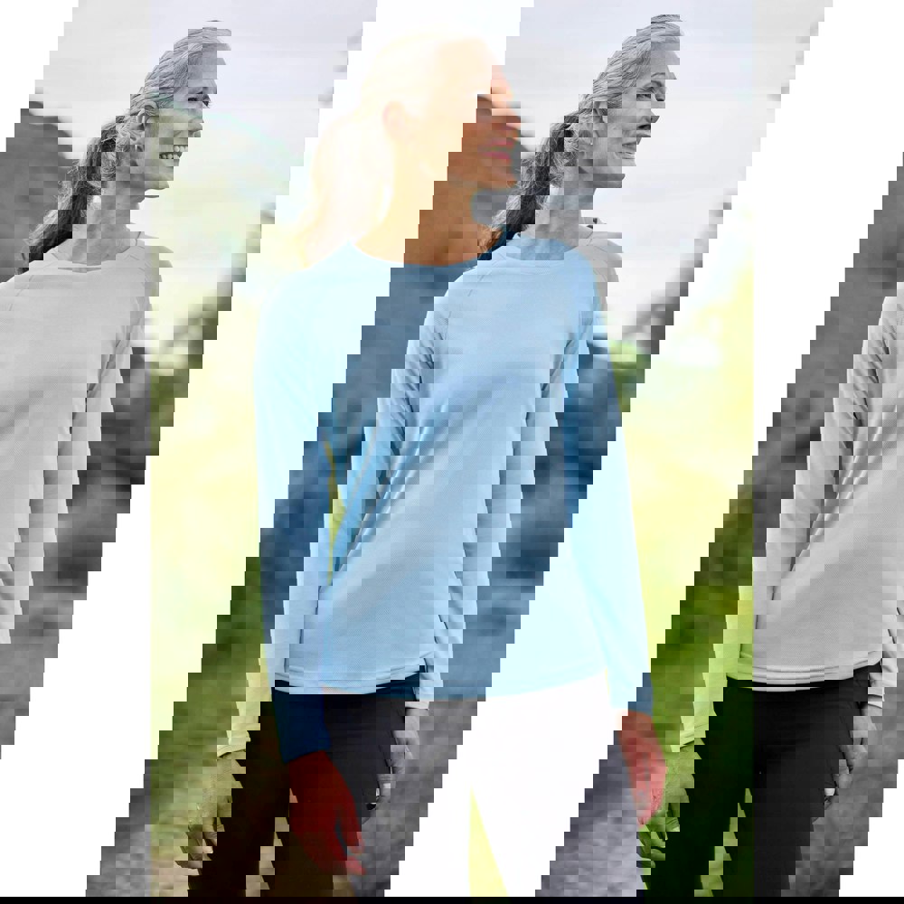This long-sleeved top from Mountain Warehouse comes in pale blue with a plain finish and a crew neckline. Made from 100% polyester mesh, it offers a lightweight feel for everyday wear and layering.
