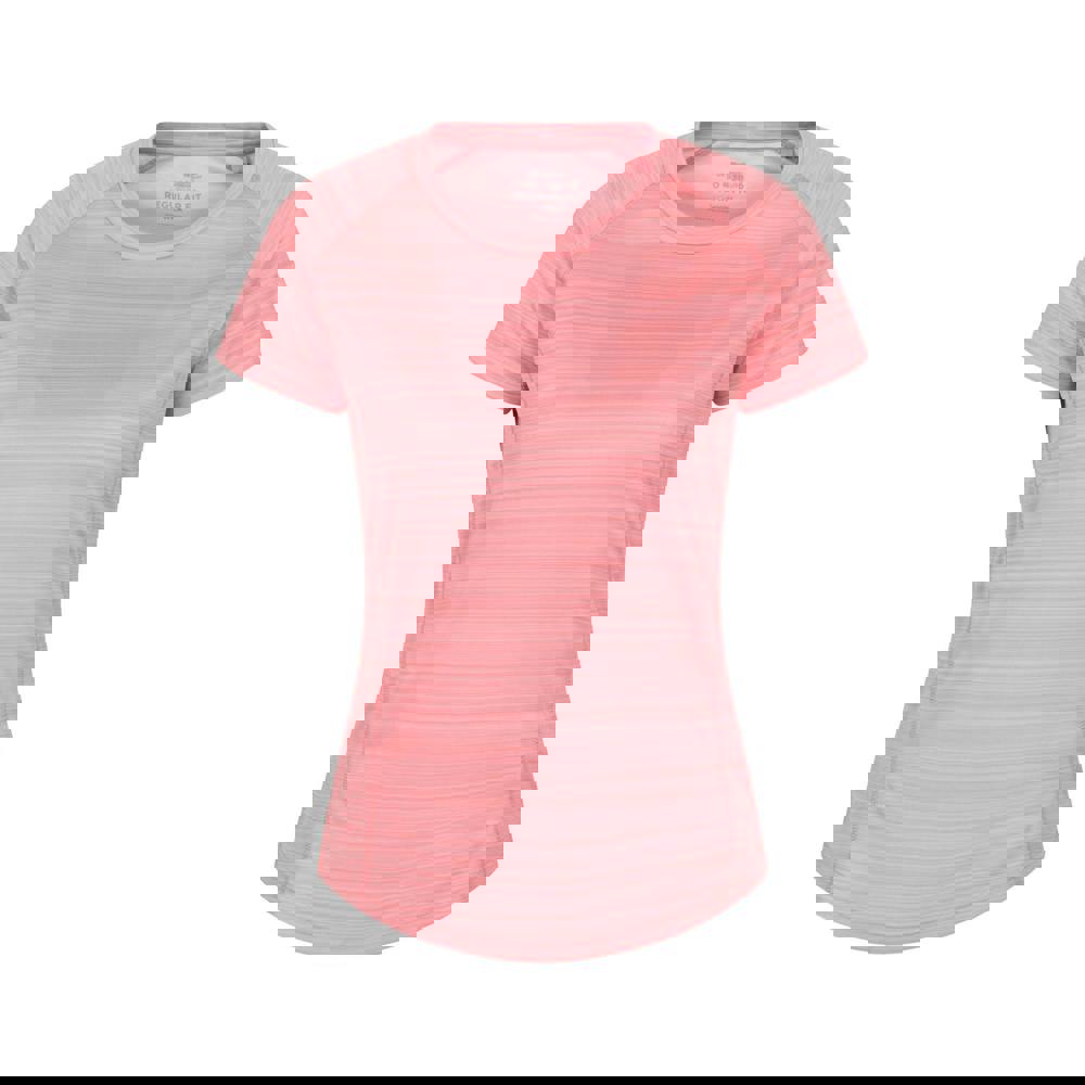 The Endurance Striped T-Shirt from Mountain Warehouse is made from 100% polyester mesh and finished in a pink striped design. It has a crew neckline and short sleeves for a clean, everyday shape. IsoCool fabric technology is used alongside a lightweight, moisture wicking and quick dry finish. Back neck tape adds a neat internal detail.
