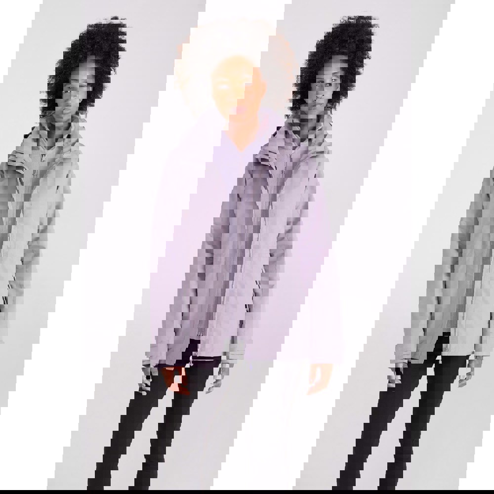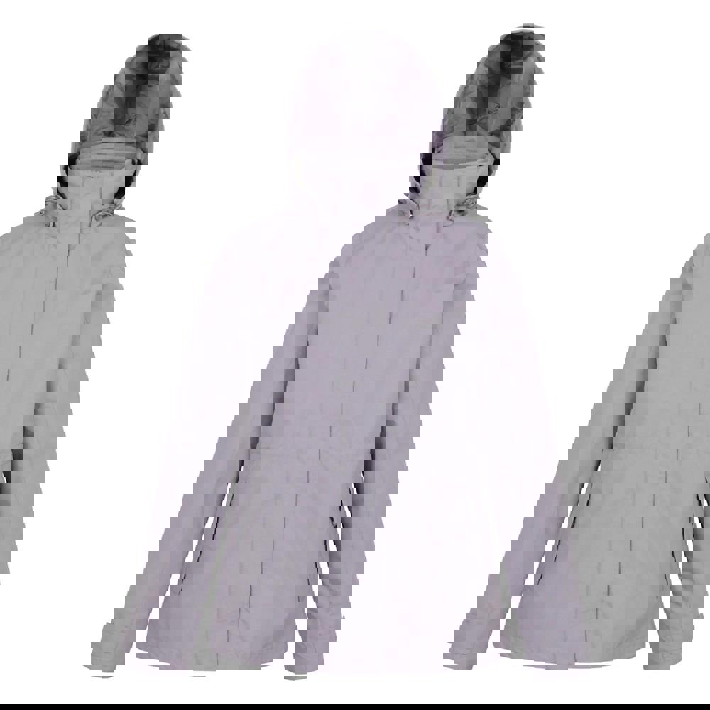 Long sleeves and a hooded neckline provide coverage, while the hood packs away and adjusts with a toggle. Adjustable details at the cuffs and hem help refine the fit, and the jacket fastens with a full zip and flap, supported by stud and touch fastenings. Two welted side pockets complete the layout.