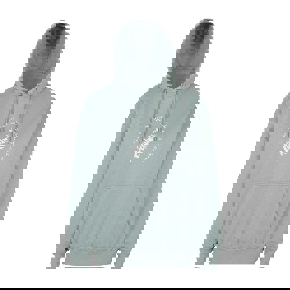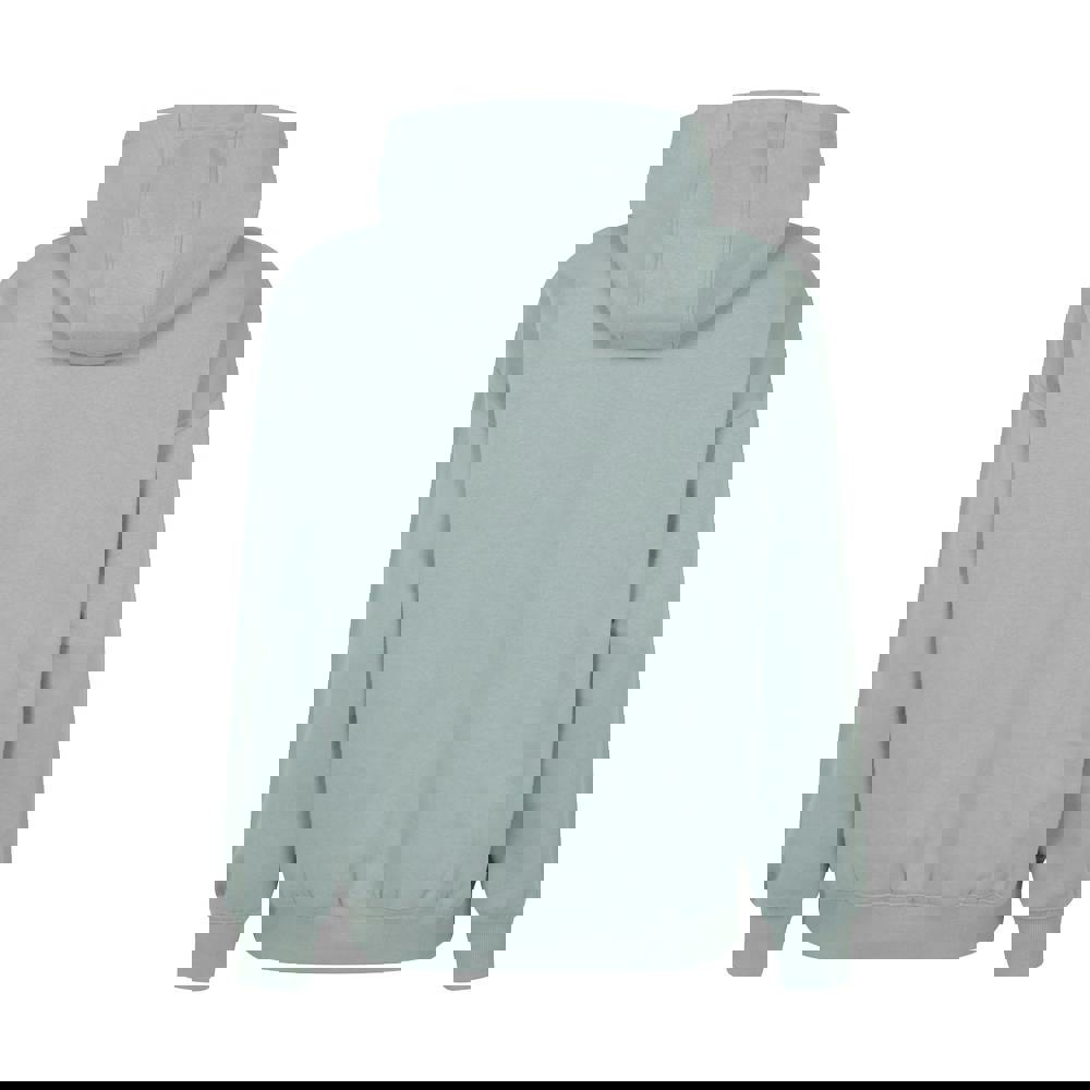 This women’s hoodie is made from a 60% cotton and 40% polyester blend and comes in khaki green. It has a printed slogan design and a hooded neckline with a sew-on hood and adjustable drawstring.