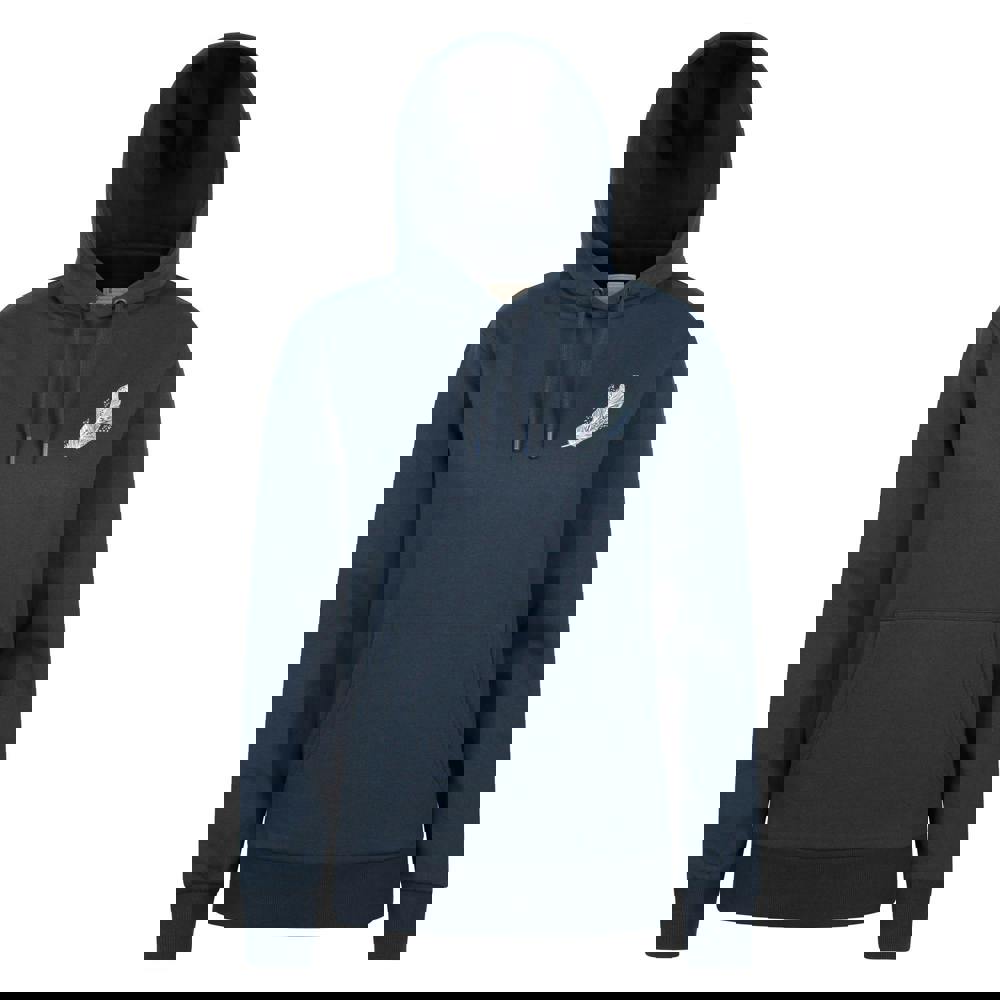 This women’s hoodie is made from a cotton, elastane and polyester blend with a brushed finish. It has a printed feather design and a lightweight, breathable, soft handle.