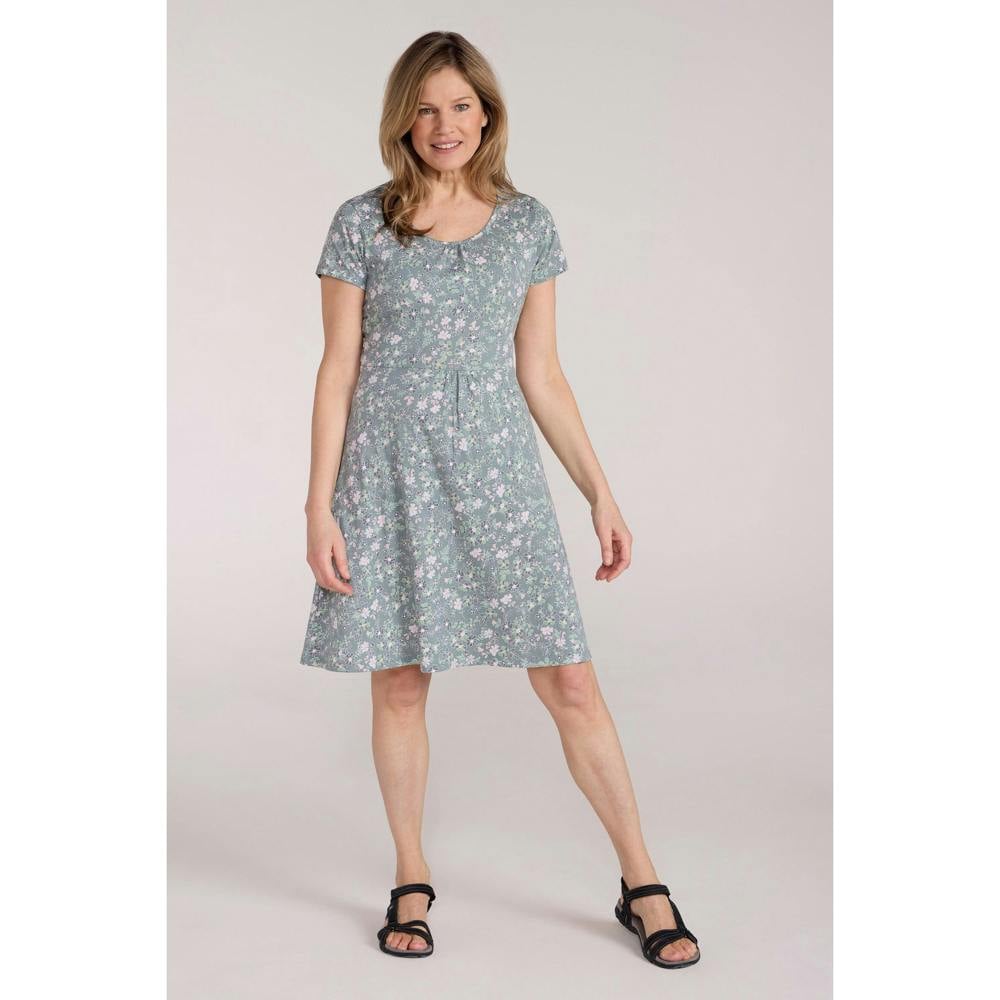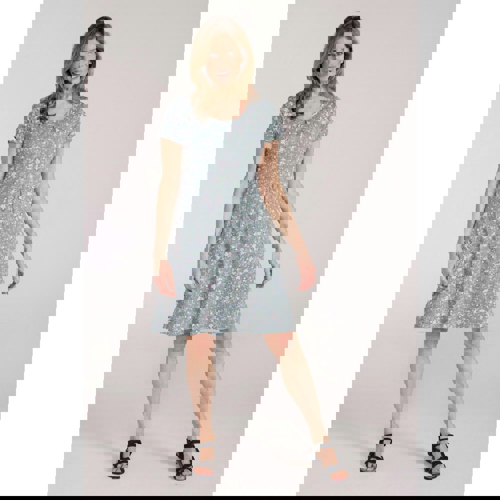 This denim midi dress is made from 100% cotton and comes in a plain pale green finish. It has a crew neckline and short sleeves, with a relaxed fit for easy everyday wear.