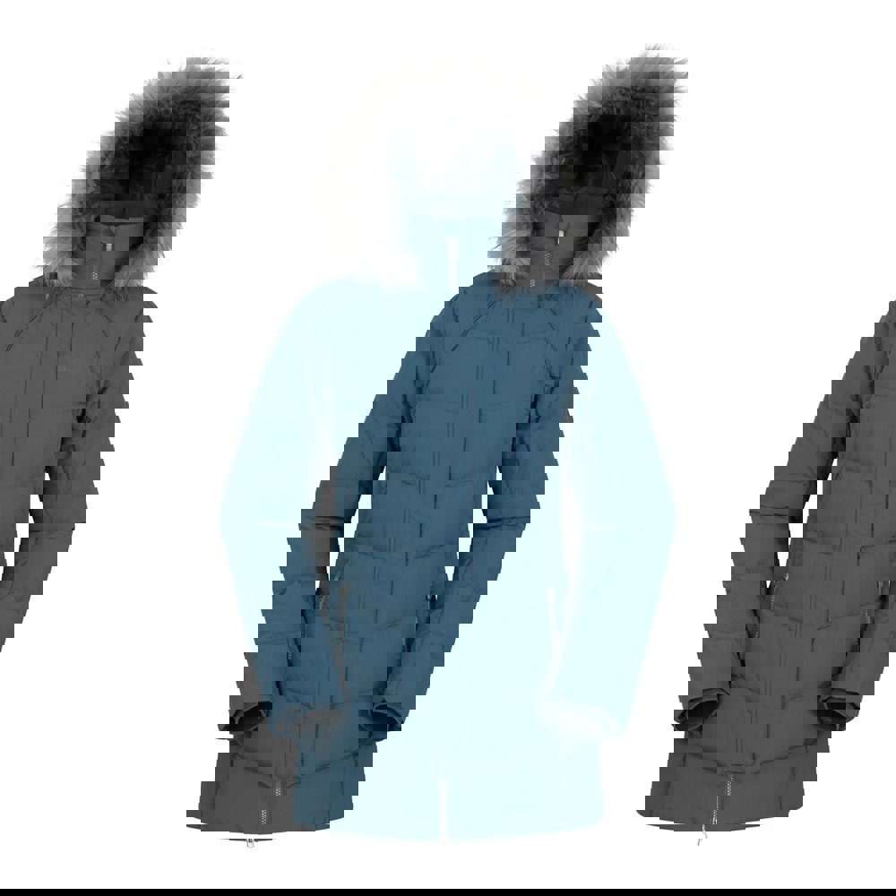 It has a hooded neckline with a detachable hood, long sleeves and fitted cuffs. The front fastens with a full zip, stormflap and stud closure. Two side pockets with zip fastening provide secure storage, while logo detailing and acrylic and modacrylic trim complete the design. Cold resistance is stated to -35°C, with a maximum temperature of -35°C.