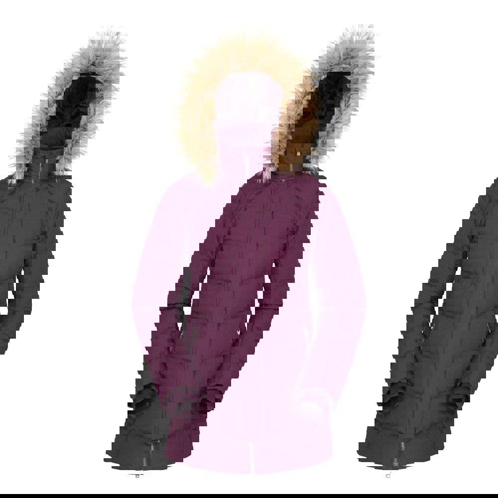 It has a hooded neckline with a detachable hood, long sleeves and fitted cuffs. The front closes with a full zip, stormflap and stud fastening. Two side pockets with zip closure provide secure storage, and the design is finished with logo detailing and an acrylic and modacrylic trim. Cold resistance is stated to -35°C.