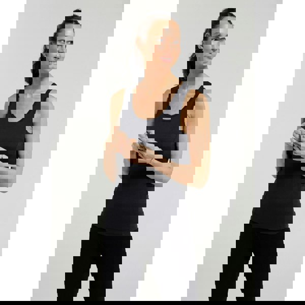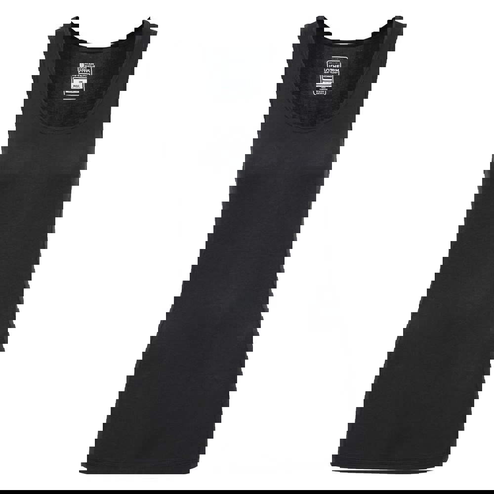 This women’s thermal vest top comes in black with a plain finish for easy layering. It has a scoop neckline and a sleeveless cut, making it suitable for wearing under other clothing.