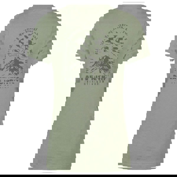This short-sleeved T-shirt comes in khaki green with a mountain, sunset and text design. It has a crew neckline and is made from 100% cotton, with a cotton and elastane trim.