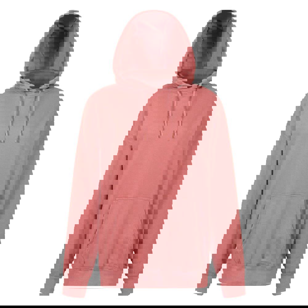 This women’s hoodie is made from a cotton and polyester blend with a textured finish. It has a hooded neckline with a sew-on hood, lined with brushed waffle material, and finished with a drawcord.
