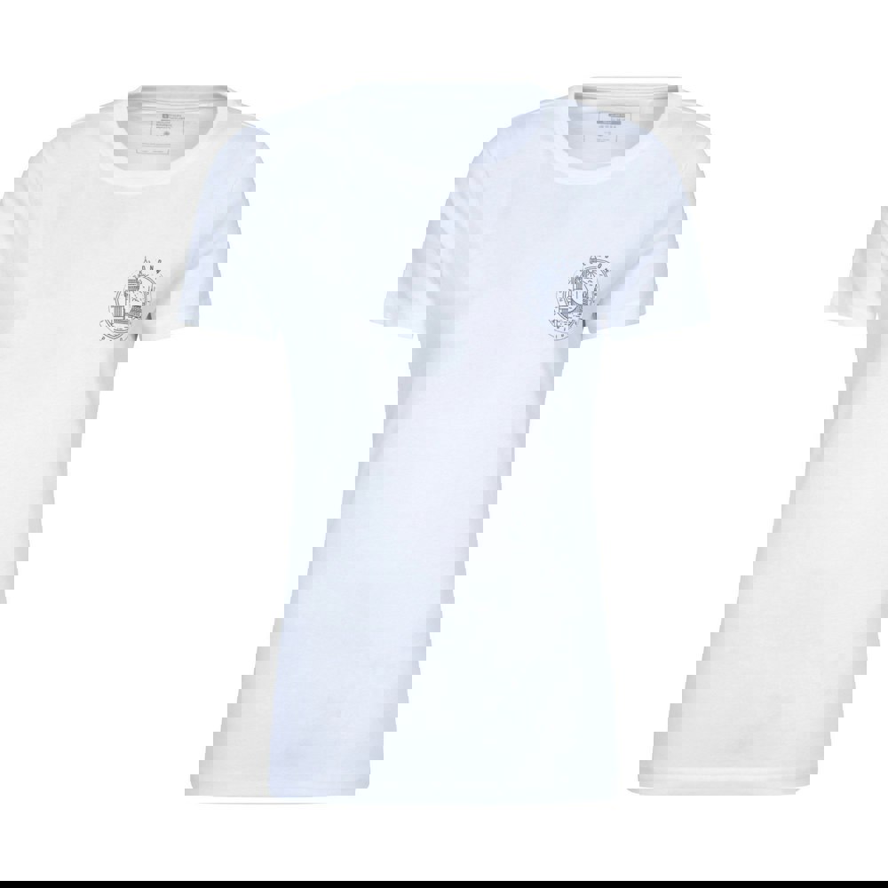 This short-sleeved women’s T-shirt from Mountain Warehouse comes in white and is made from 100% organic cotton. It has a crew neck and a printed design with text, Tower Bridge and Westminster Abbey.