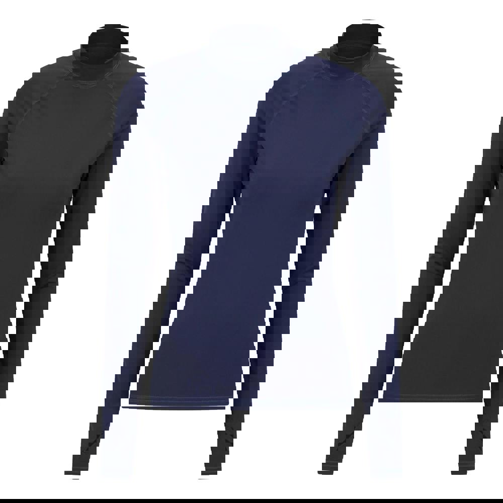 This women’s long-sleeved rash guard from Mountain Warehouse comes in navy with a contrast design and a slim fit. Made from 82% nylon and 18% elastane, it uses lightweight, quick-dry stretch fabric technology for comfortable movement. Flat seams help prevent chafing, making it suitable for active wear.