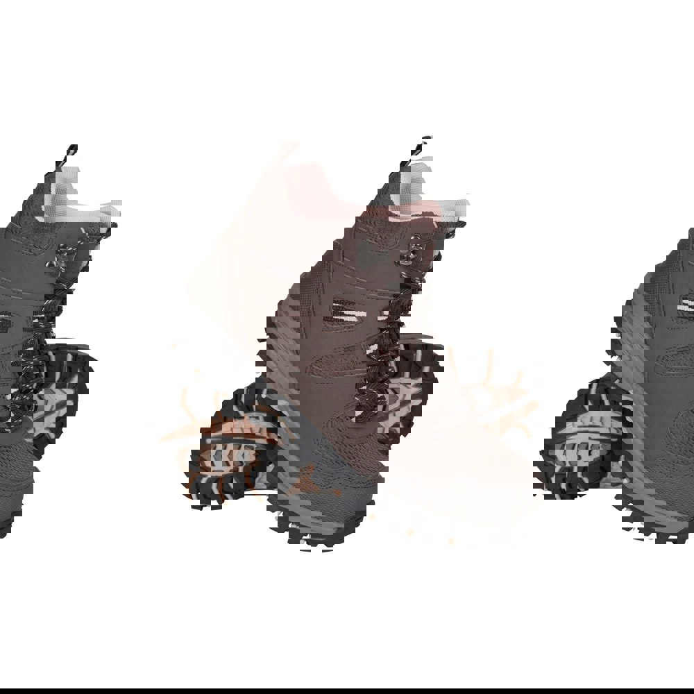 These women’s Mcleod wide walking boots from Mountain Warehouse are built with a mesh and synthetic upper and a round toe. Cut to the ankle with a flat profile, they include contrast detailing and logo branding for a defined finish. A moulded EVA insole sits inside, while the gripped, high-traction outsole is paired with extra stability for sure-footed wear.