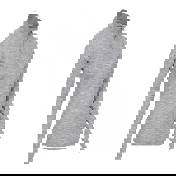 This women’s merino wool thermal top is made from an 80% merino wool and 20% polyester blend, finished in a plain light grey. A high neck with a zip opening adds adjustable coverage, while long sleeves create a streamlined, practical shape for layering.