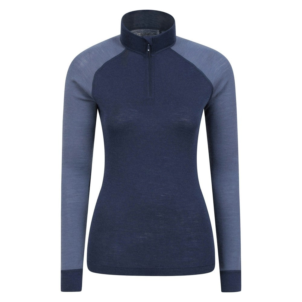 This women’s thermal top from Mountain Warehouse is made from a merino wool blend with added polyester. It comes in a plain navy finish and is cut with long sleeves for easy layering.