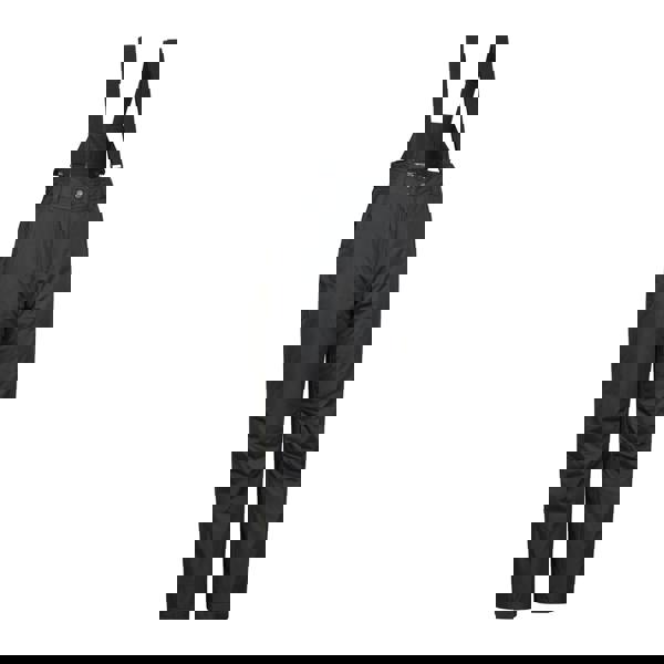 The design includes an elasticated waist with belt loops and detachable braces. A button fastening and zip fly provide a secure closure, while two zipped side pockets offer practical storage.