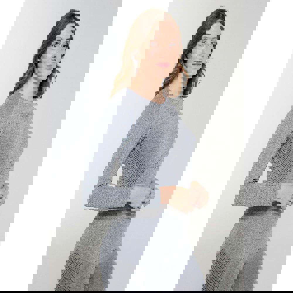The Off Piste II base layer top from Mountain Warehouse comes in light grey with a textured finish and a round neckline. Made from stretch material, it has long sleeves and a seamless construction for a clean, streamlined look.