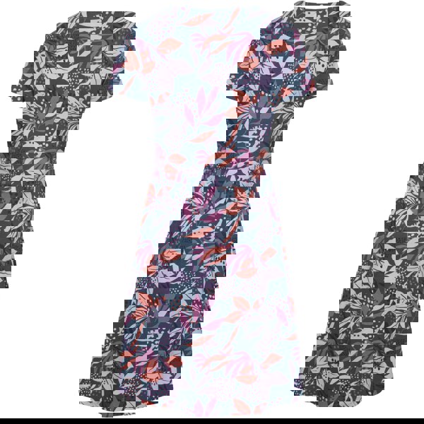 Refresh your warm-weather wardrobe with this leafy floral dress in purple. Made from a 50% cotton and 50% viscose blend, it has a soft-touch feel and a lightweight finish for comfortable everyday wear. The rounded neckline and short sleeves keep the silhouette simple, while the printed floral pattern adds detail without extra fuss.