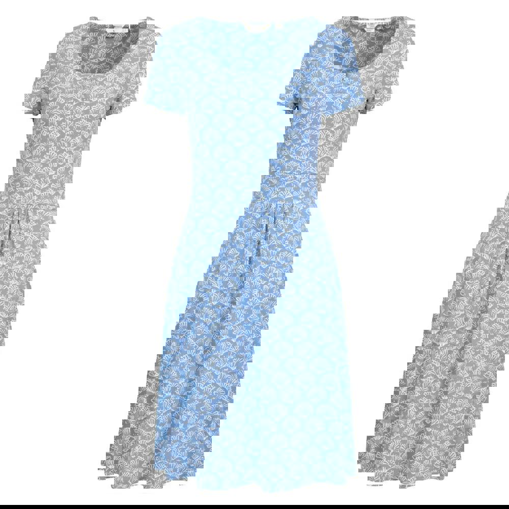 This midi dress from Mountain Warehouse comes in light blue with an all-over seashell print. It has a round neckline and short sleeves for a clean, simple shape, finished with two side pockets for everyday practicality.