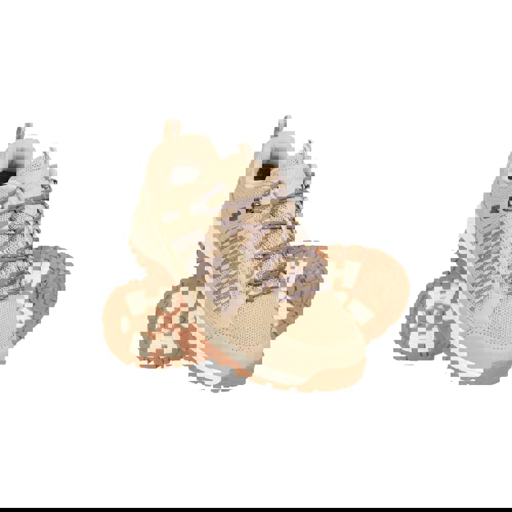 These women’s outdoor walking shoes from Mountain Warehouse are finished in taupe with contrast detailing, logo and text accents. A low-cut profile and round toe shape create a clean, practical silhouette, secured with a lace-up fastening through five eyelets. A pull tab supports easy on and off, while reinforced sections at the heel and toe add structure.