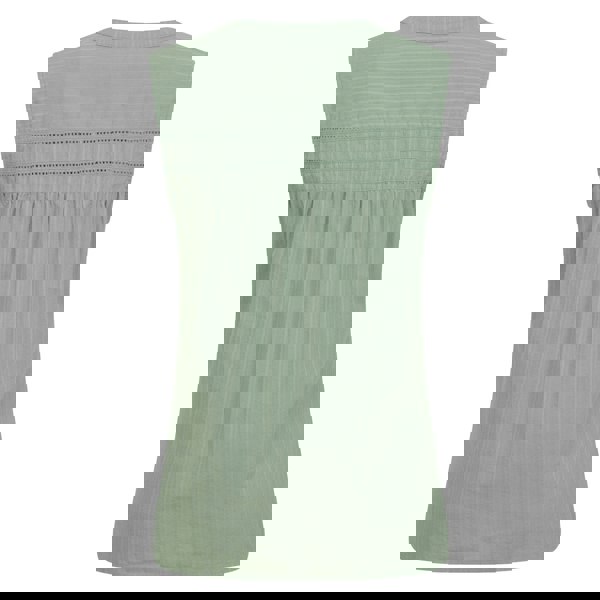 This sleeveless shirt is made from 100% cotton with a soft-touch voile finish. It comes in a khaki green colourway with a striped design, offering a clean look for warm-weather wear.