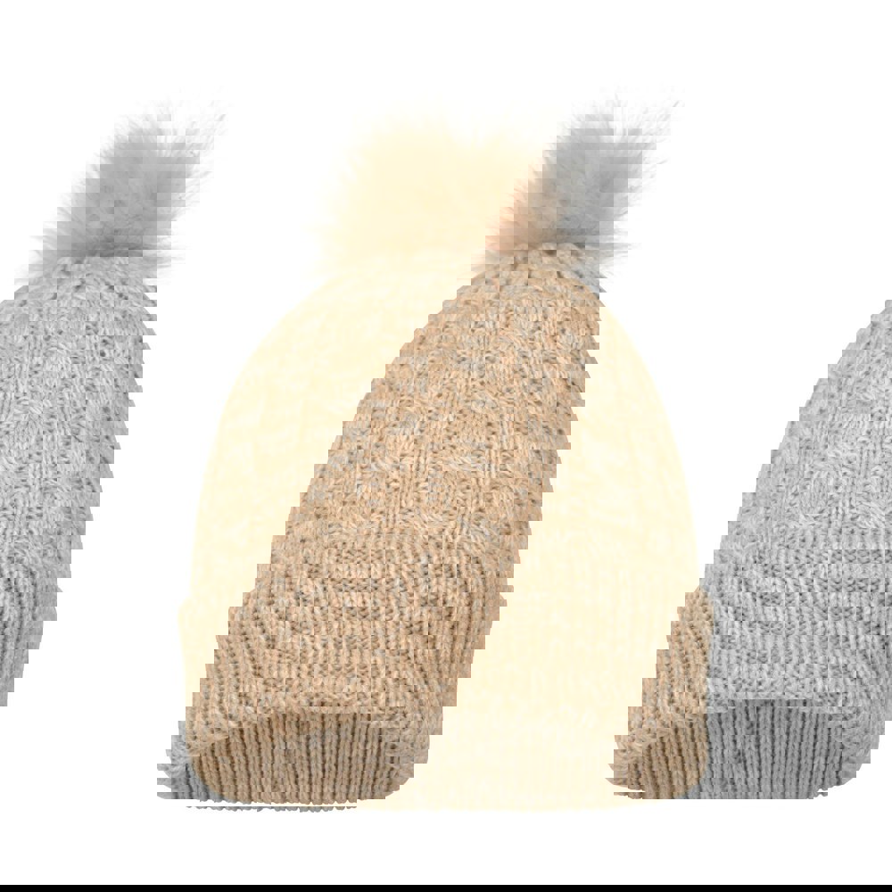 The Mountain Warehouse Women’s Pom Pom Faux Fur Lined Beanie is a patterned, knitted hat designed for everyday wear. Finished in beige, it offers a soft-touch feel and a lightweight design that’s easy to wear throughout the day.