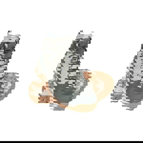 Mountain Warehouse Rapid Suede Waterproof Walking Boots in light khaki combine a suede and synthetic upper with a mid-cut profile and round toe. The lace-up fastening uses six eyelets for a secure fit, while contrast detailing, stitched accents and logo branding complete the look.