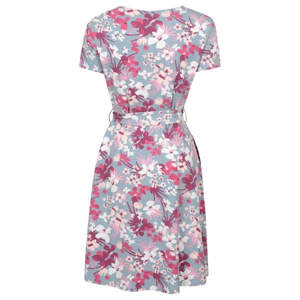 Refresh your warm-weather wardrobe with this jersey wrap dress in pink. Made from 95% cotton and 5% elastane, it has a lightweight feel and a V neck for a clean, feminine finish. The short sleeves keep the silhouette easy to wear, while the printed flower design adds a distinctive look.
