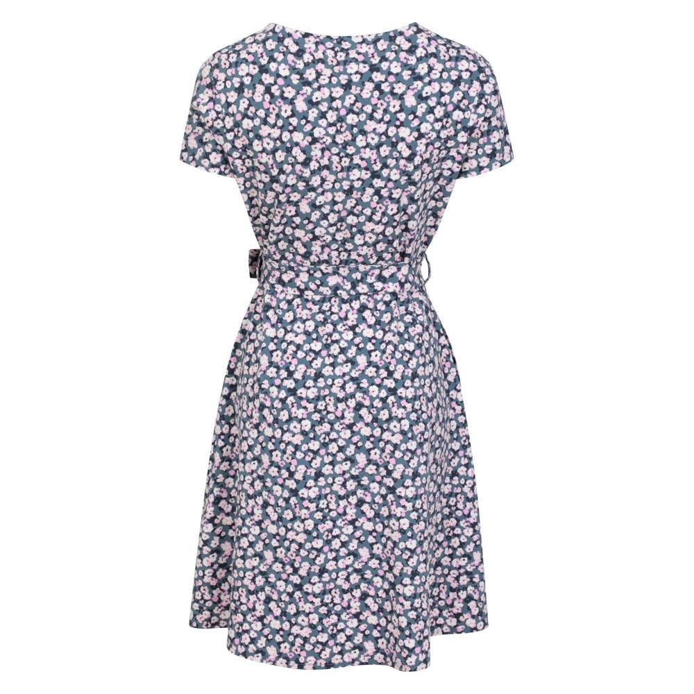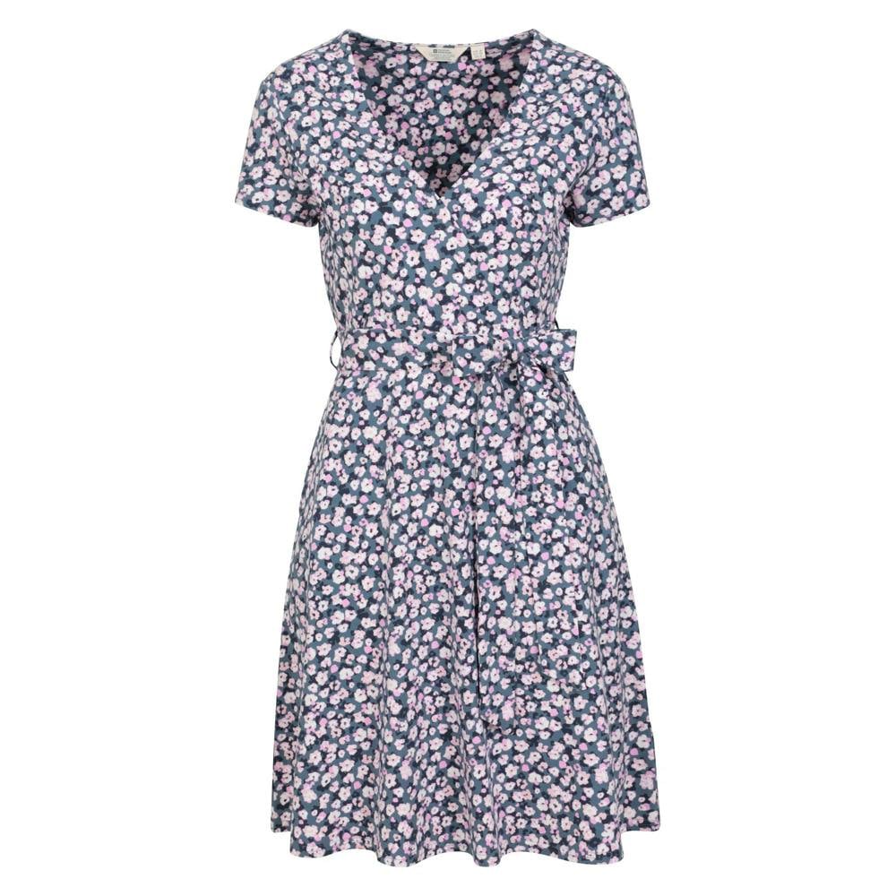 This jersey wrap dress comes in a grey floral design with a wrap neckline and stud detail. Cut with short sleeves, it includes belt loops and a tie belt for a secure finish.