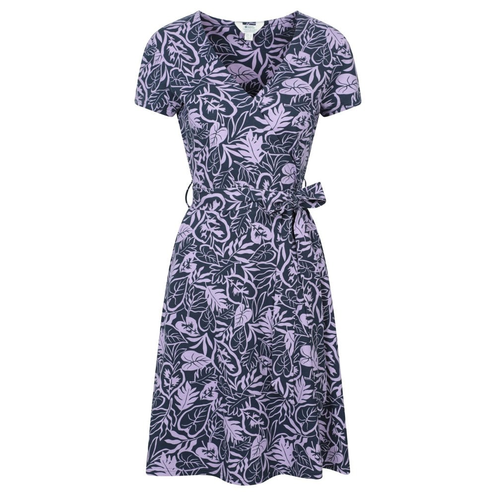 Made from a cotton-rich jersey with added elastane, this wrap dress offers a lightweight feel with a printed leaf silhouette. The V-neckline and short sleeves create a clean, easy-to-wear shape, finished in lilac for a fresh look.