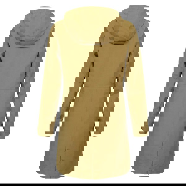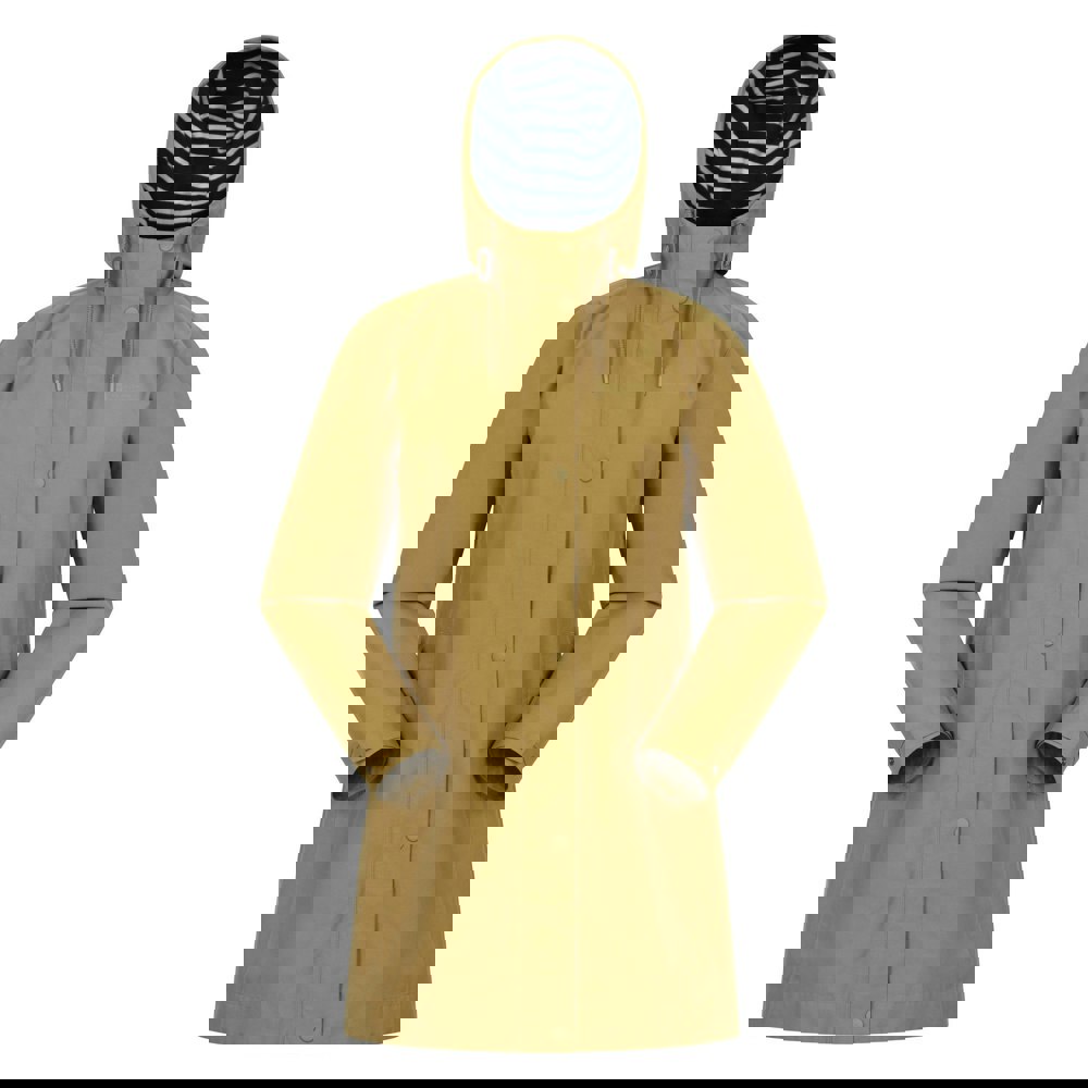 This women’s Seashore waterproof jacket from Mountain Warehouse comes in a plain yellow finish with an attached hood. The hood includes a drawstring, and the long sleeves are finished with touch fastening tabs at the cuffs. A full zip fastening is supported by press studs for secure closure.