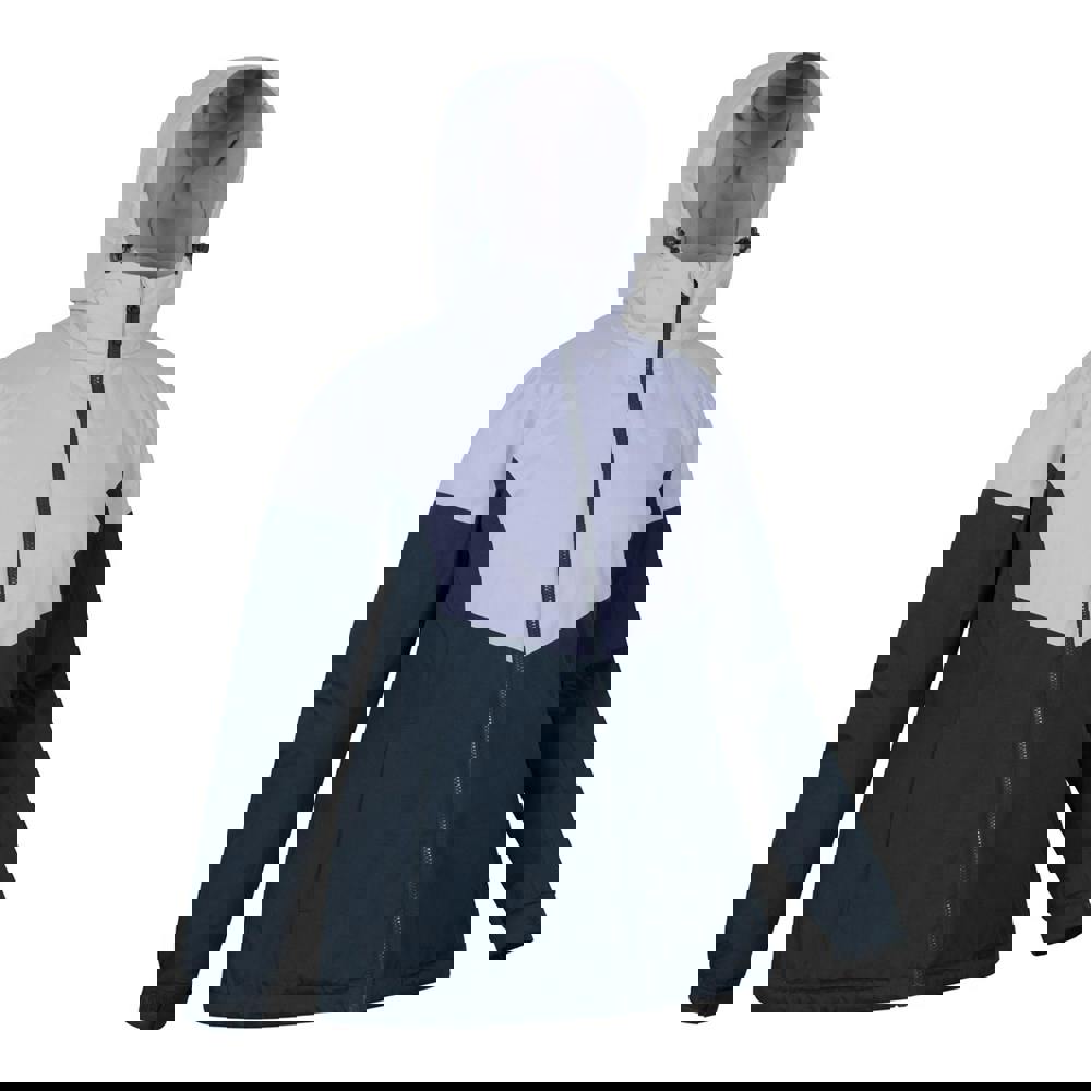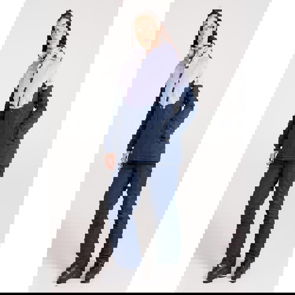 This women’s ski set includes one jacket and one pair of trousers in navy. Both pieces are made from 100% polyester with a microfibre filling. The design includes contrast detailing and a logo, with a DWR finish and thermal, insulating fabric technology.