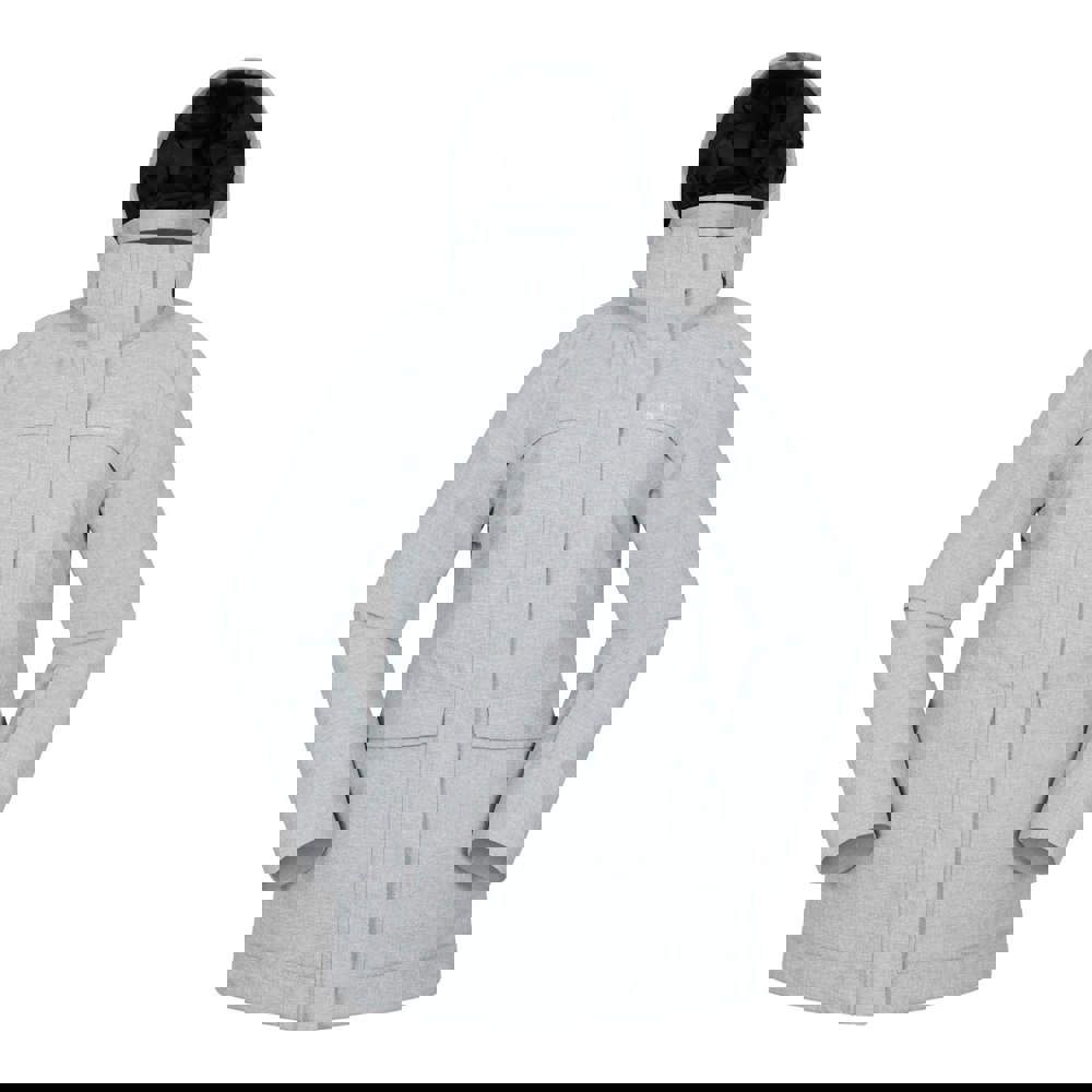 Made from 100% polyester, this women’s Snowdrift ski jacket is built for wet-weather wear with breathable, waterproof fabric technology. The light grey finish is paired with a tonal logo for a clean, understated look, while the long-sleeved, padded construction adds insulation for colder conditions.
