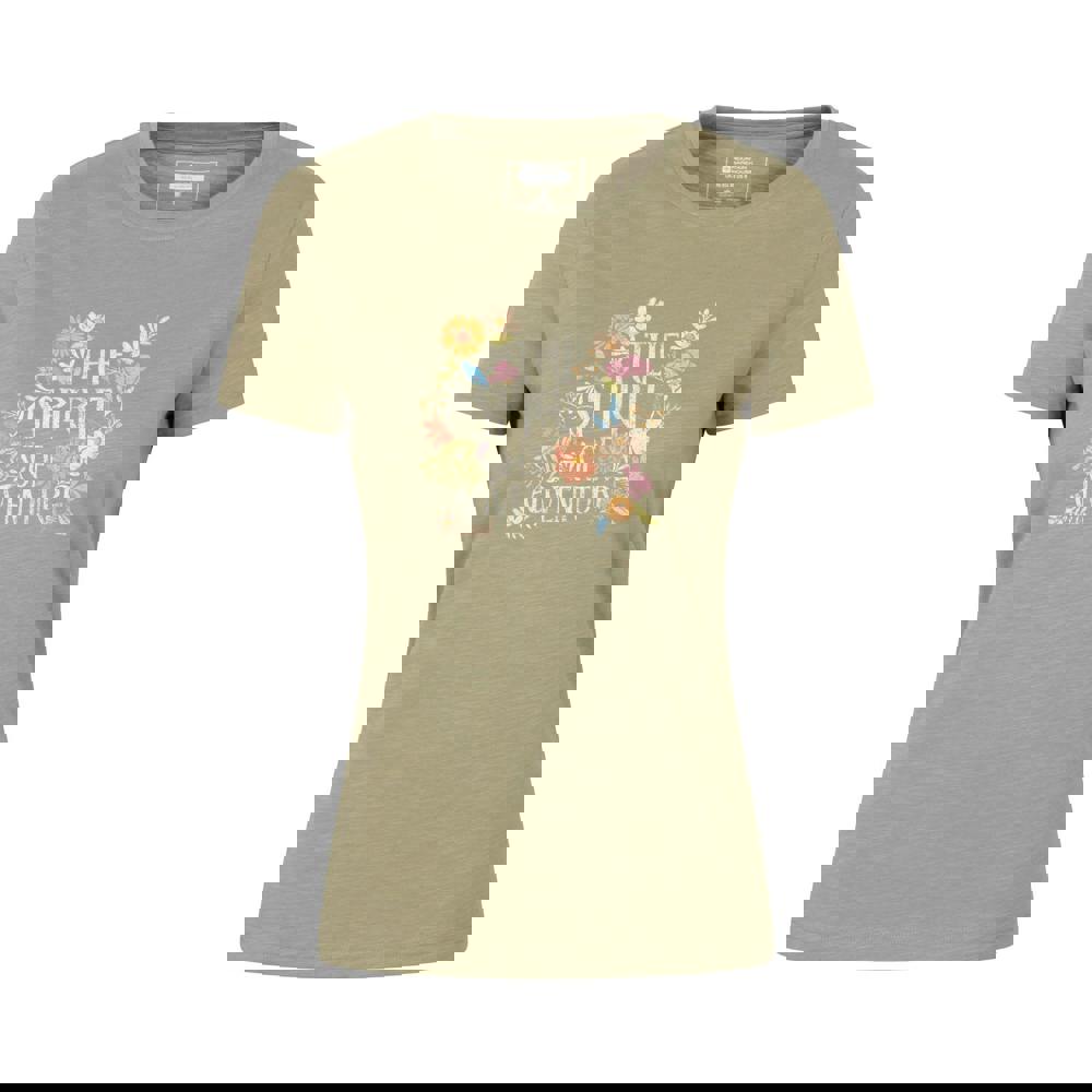 Bring a casual staple into your wardrobe with this printed T-shirt from Mountain Warehouse. Made from 100% cotton, it has a lightweight, soft feel that suits everyday wear. The khaki green base is finished with a floral print and text detail for a distinctive look.