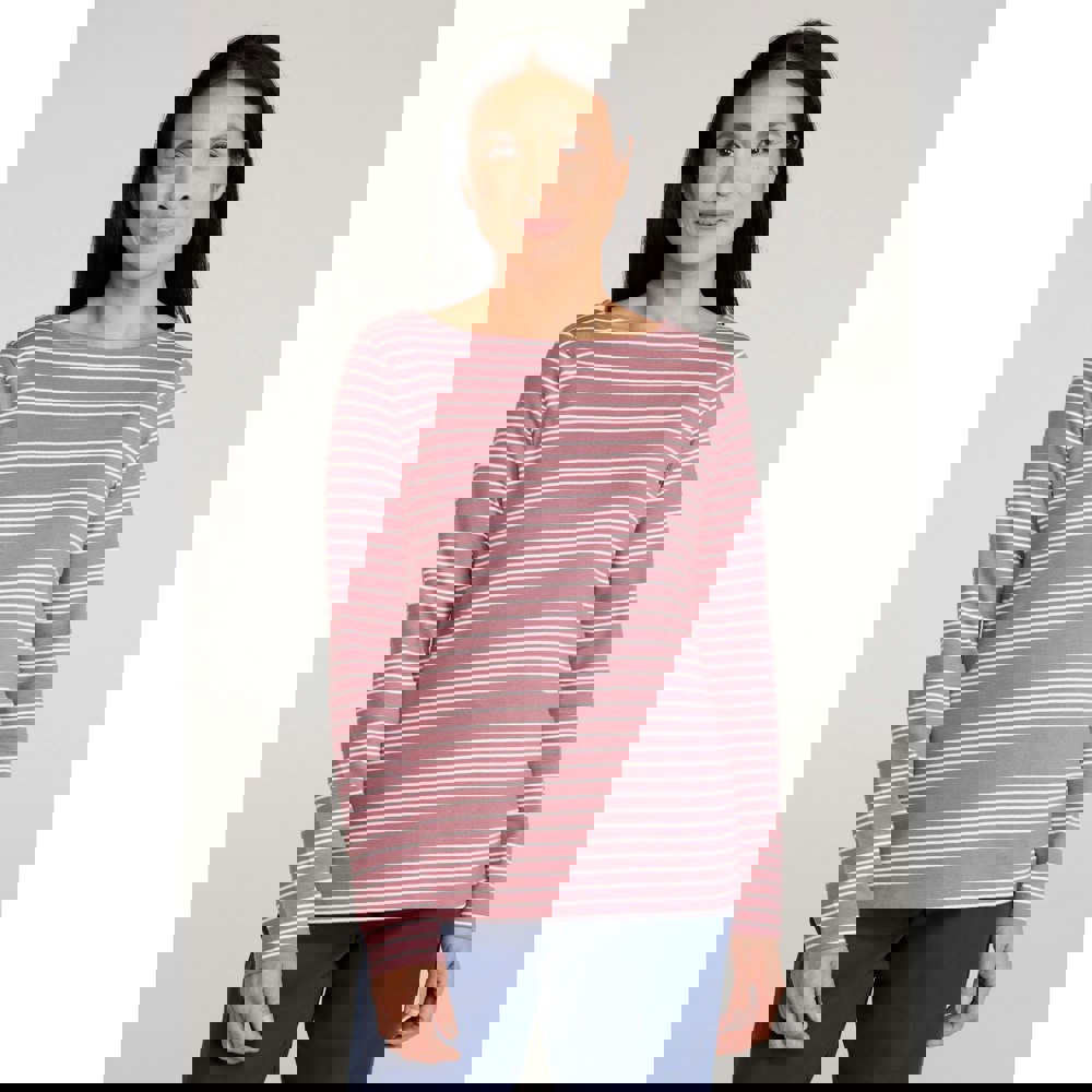 This women’s St Ives crew neck top from Mountain Warehouse comes in pink with a striped design. Made from 100% cotton, it has a crew neckline and 3/4 sleeves for a clean, casual shape that works well for everyday wear.