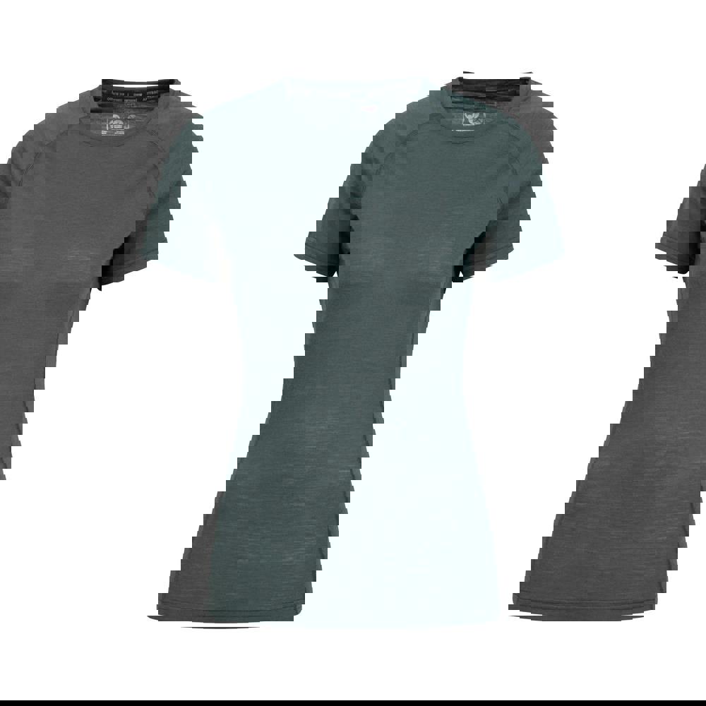 This short-sleeved thermal top is made from a 50% merino wool and 50% polyester blend, finished with a soft-touch feel. In a plain khaki green design, it has a crew neckline for a clean, simple look that works well for layering.