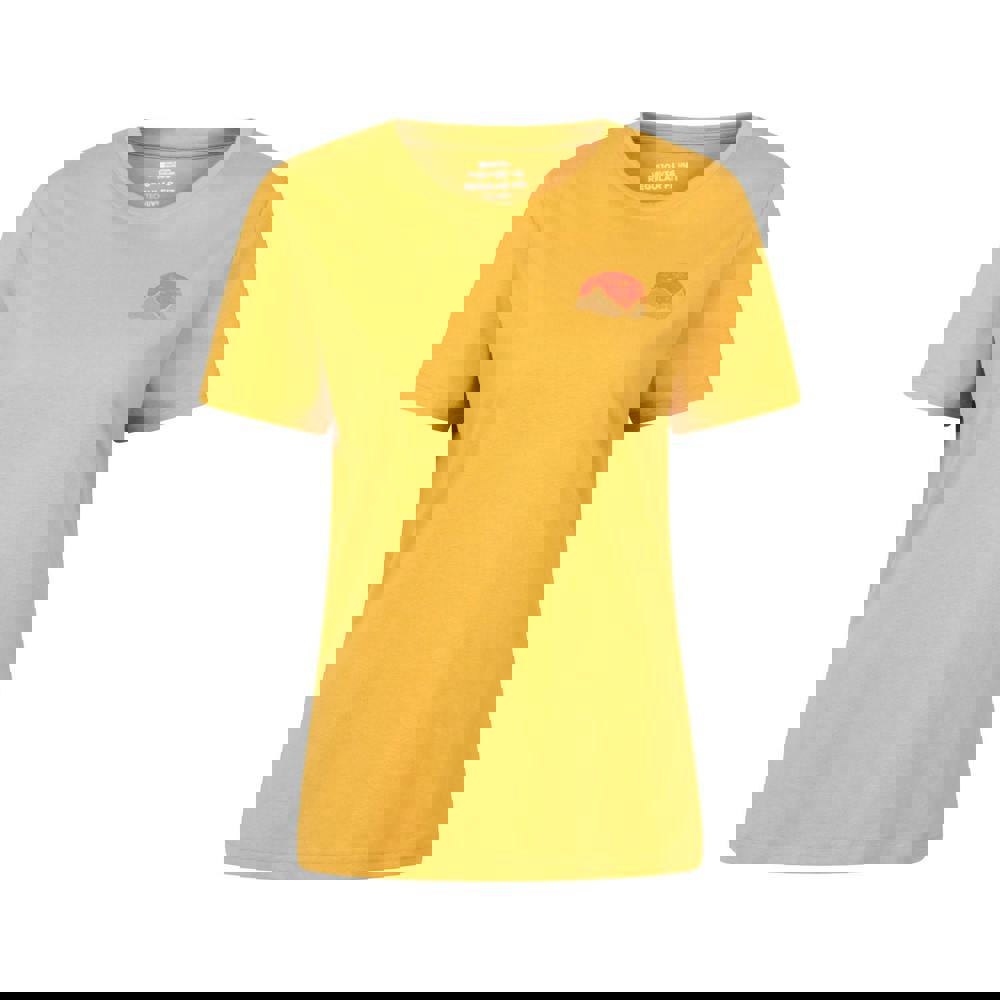 Refresh your casual wardrobe with this short-sleeved T-shirt from Mountain Warehouse. Made from 100% organic cotton, it has a lightweight feel that suits everyday wear. The mustard colour is finished with a back print showing a mountain and sunset design, adding a distinctive graphic detail.